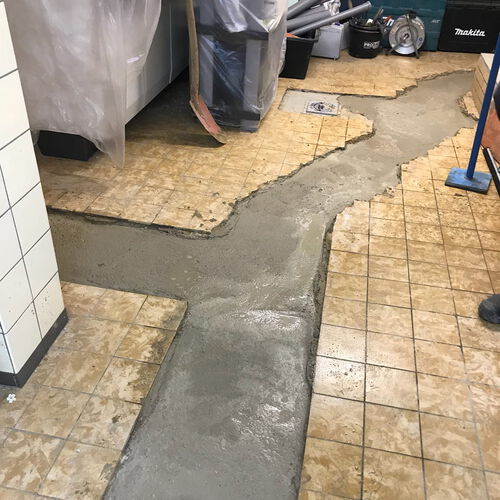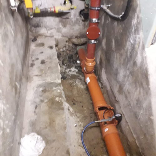 Sind Leitungen unter der Bodenplatte verlegt, kann man auch darüber nachdenken, diese aufzugeben und durch neue Leitungen, die hoch liegend aus dem Haus geführt werden können zu ersetzen.