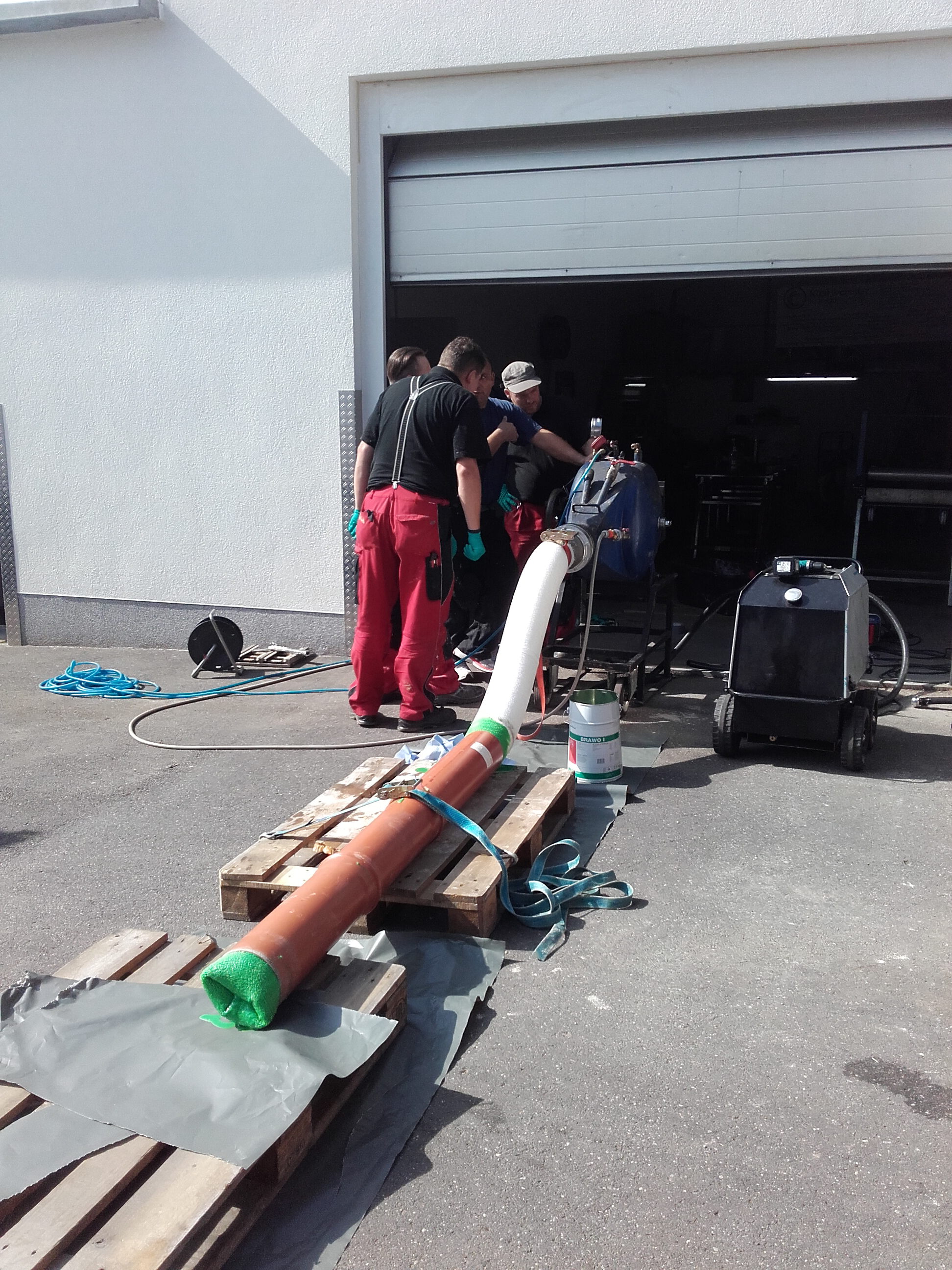 Beim Liningverfahren wird ein kunstharzgetränkter Gewebeschlauch in das alte Rohr eingezogen. Dieser härtet anschließend durch Wärme oder UV-Licht zu einem neuen Rohr aus. Damit kann die gesamte Leitung saniert oder eine einzelne Schadstelle repariert werden.